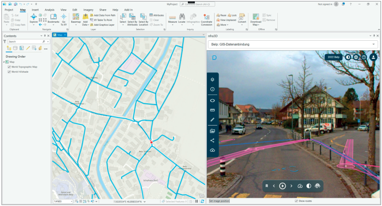Beispiel für die Einbindung der Digitalen Straße infra3D in ArcGIS Pro Desktop. Bild: iNovitas
