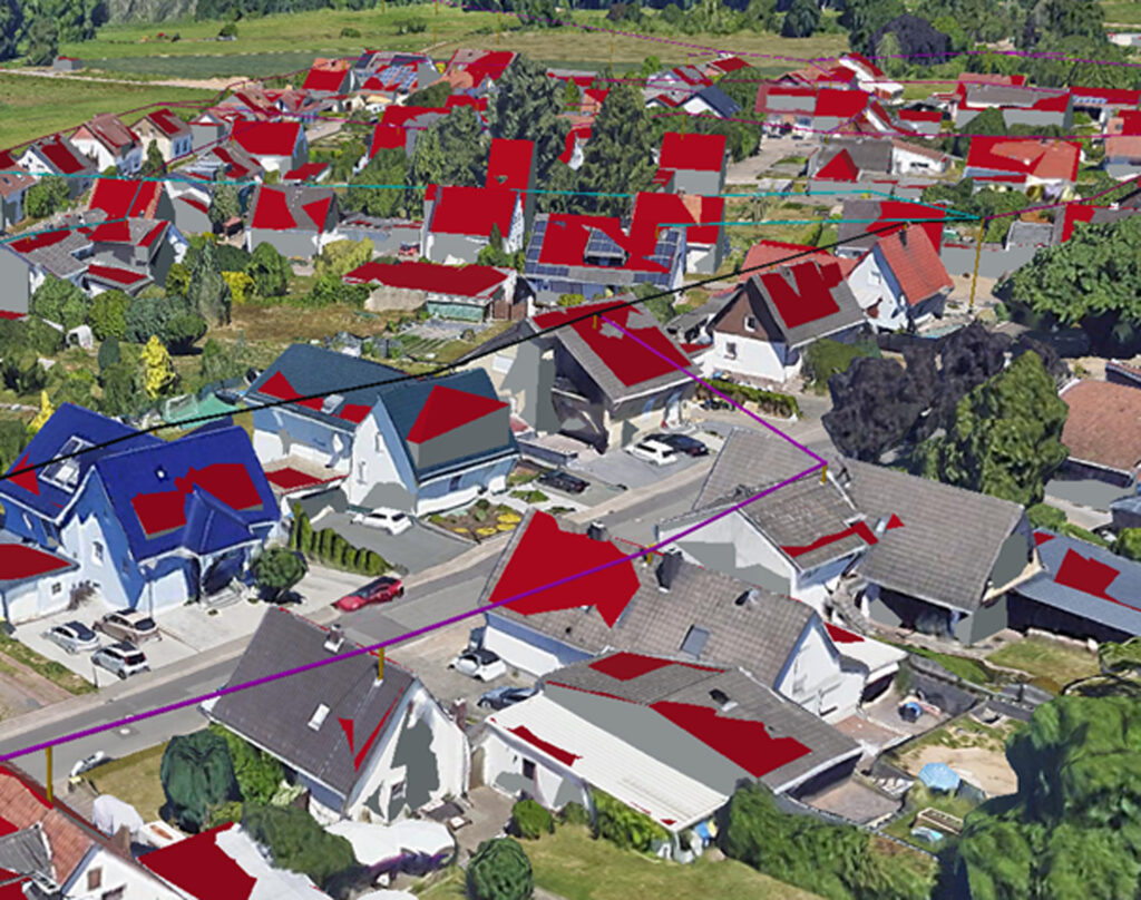 3D-Mesh-Modell mit Freileitungen der Stadt Saarlouis. Quelle: SW SLS